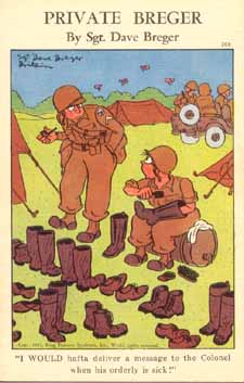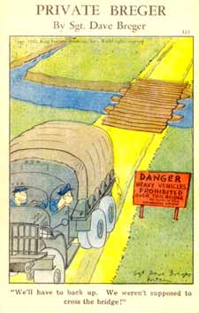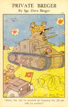 #313 ![]() "He says he just CAN'T work up hate against a stuffed bag." | #314 ![]() "Shoulder bars! Get your lieutenant's shoulder bars here!" | #315 ![]() Sorry, Sir, but he insisted on bringing his .22 air rifle for rabbits. |
