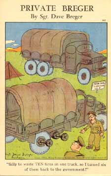 #310 ![]() "Silly to waste TEN tires on one truck, so I turned six of them back to the government." | #311 ![]() "He doesn't like water dripping off his helmet down his neck." |