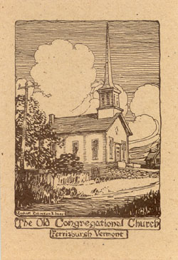 In commemoration of that event a limited addition post card (1000 copies) was made using Rachael's art work. The view is the Old Congregational Church in Ferrisburgh, Vermont. The church is still there. It is somewhat run-down these days, but it stands proudly as a reminder of Vermont's history. Several hundred cards have been sold, but you can still have a copy if you would be so kind as to send a contribution - may we suggest $5.00, it's tax deducible - to the Rokeby Museum, 4334 U.S. Route 7, Ferrisburgh, Vermont 05456